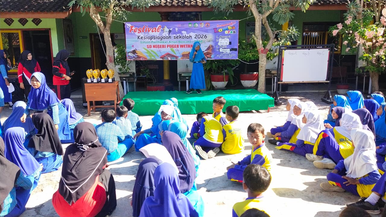 JEMBER – Sebanyak 165 siswa dan 16 guru di SD Negeri Puger Wetan 01, Rabu (04/02/26) mengikuti festival kesiapsiagaan bencana. Untuk penyampaian pesan edukasi pada siswa, festival dikemas dengan lomba mewarnai, cerdas cermat, games dan menyanyi yang semuanya mengandung tema kesiapsiagaan bencana.