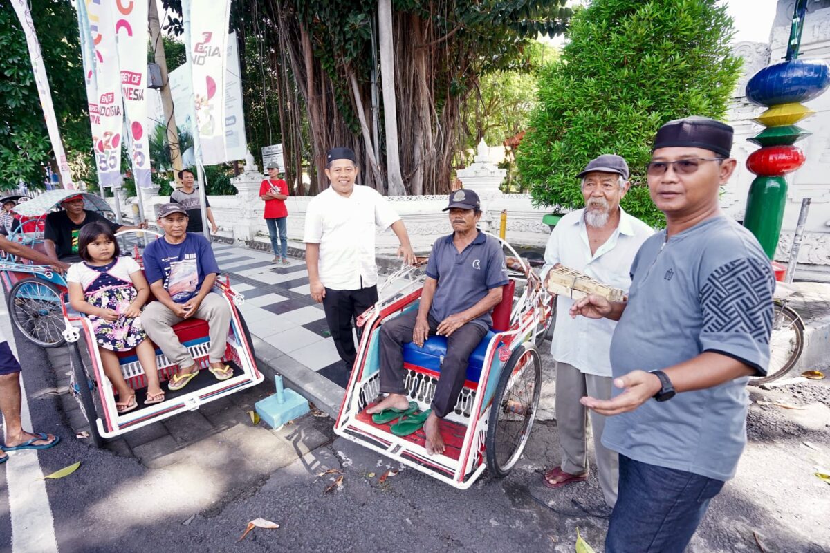 Salah satu lokasi distribusi daging dilakukan di kawasan Jalan Adi Sucipto hingga Jalan Ahmad Yani, Banyuwangi. Para pengemudi becak menjadi penerima manfaat langsung pada Minggu (8/6/2025).